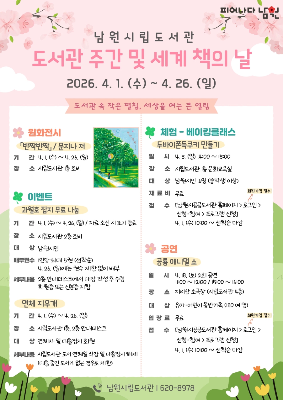 남원시립 2026년 시립도서관 도서관주간 및 세계 책의 날 행사 안내
